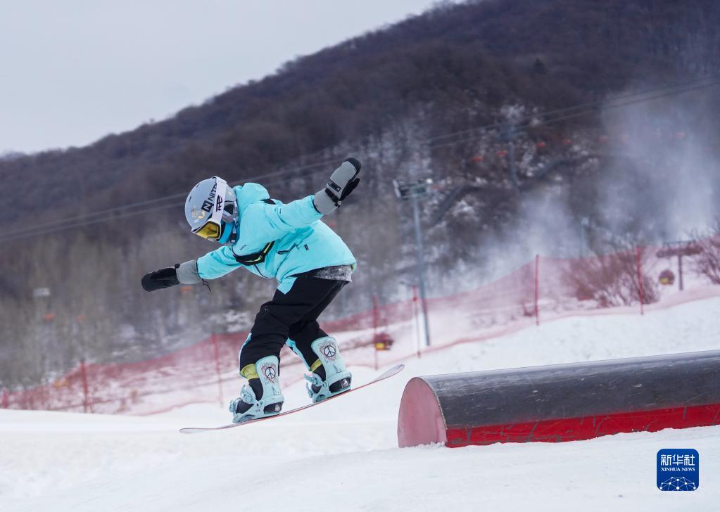 都軒銘在吉林省吉林市萬(wàn)科松花湖度假區V-PARK地形公園挑戰場(chǎng)地道具(2023年1月14日攝)。