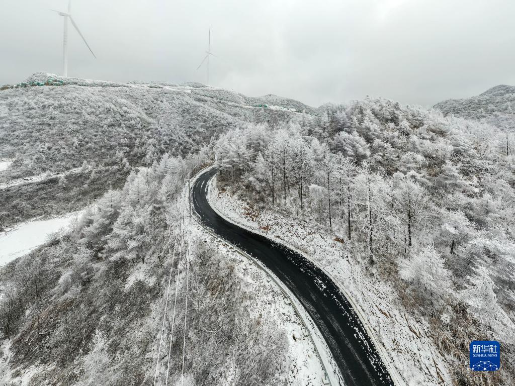 1月17日拍攝的湖南省湘西土家族苗族自治州龍山縣大安鄉翻身村雪景(無(wú)人機照片)。