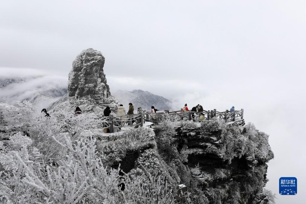 1月16日,游客在世界自然遺產(chǎn)地貴州省銅仁市梵凈山景區觀(guān)賞雪景。