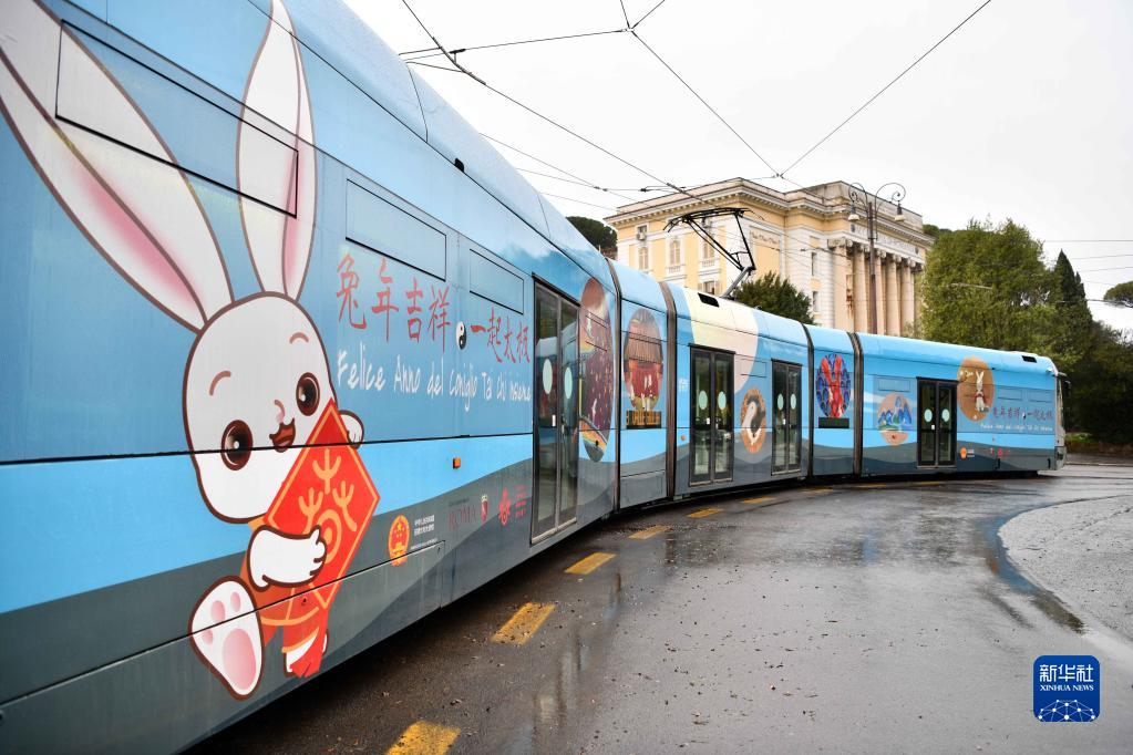 當日,兔年春節主題電車(chē)亮相意大利首都羅馬,慶祝即將到來(lái)的中國農歷新年。