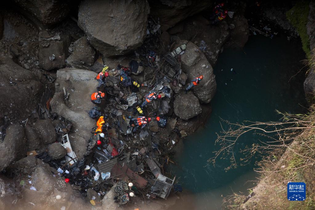 1月17日,救援人員在尼泊爾博克拉地區的墜機現場(chǎng)開(kāi)展搜救工作。