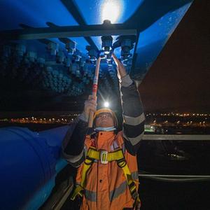 1月18日凌晨,鐵路工人在檢查杭臺高鐵椒江特大橋橋墩。