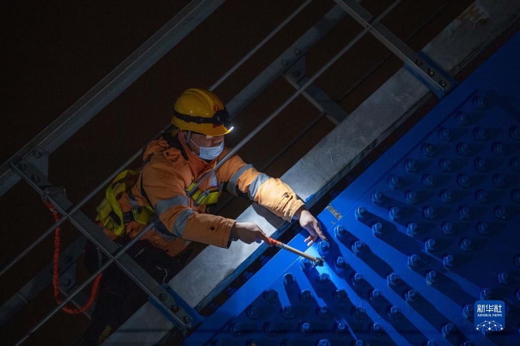 近日,浙江省迎來(lái)降溫天氣。鐵路寧波工務(wù)段椒江橋隧工區的工人們利用夜間高鐵線(xiàn)路的“天窗期”,頂著(zhù)冬夜的寒風(fēng)對杭臺高鐵椒江特大橋進(jìn)行全方位檢查,確保線(xiàn)路安全。