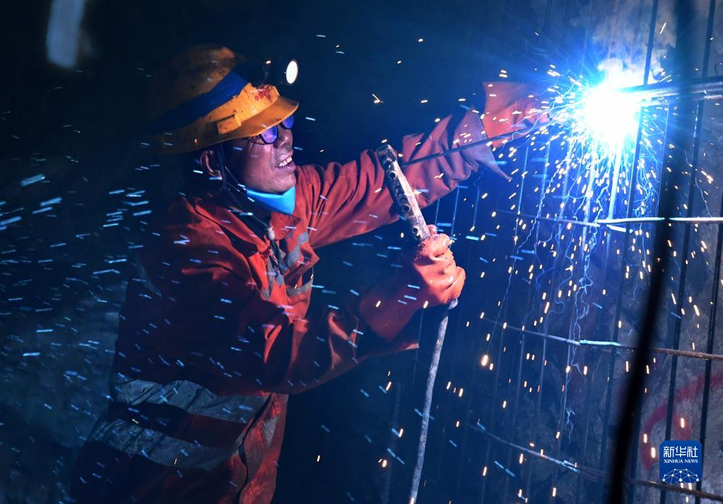 1月17日,中鐵二局建設者在海底隧道施工現場(chǎng)進(jìn)行焊接作業(yè)。