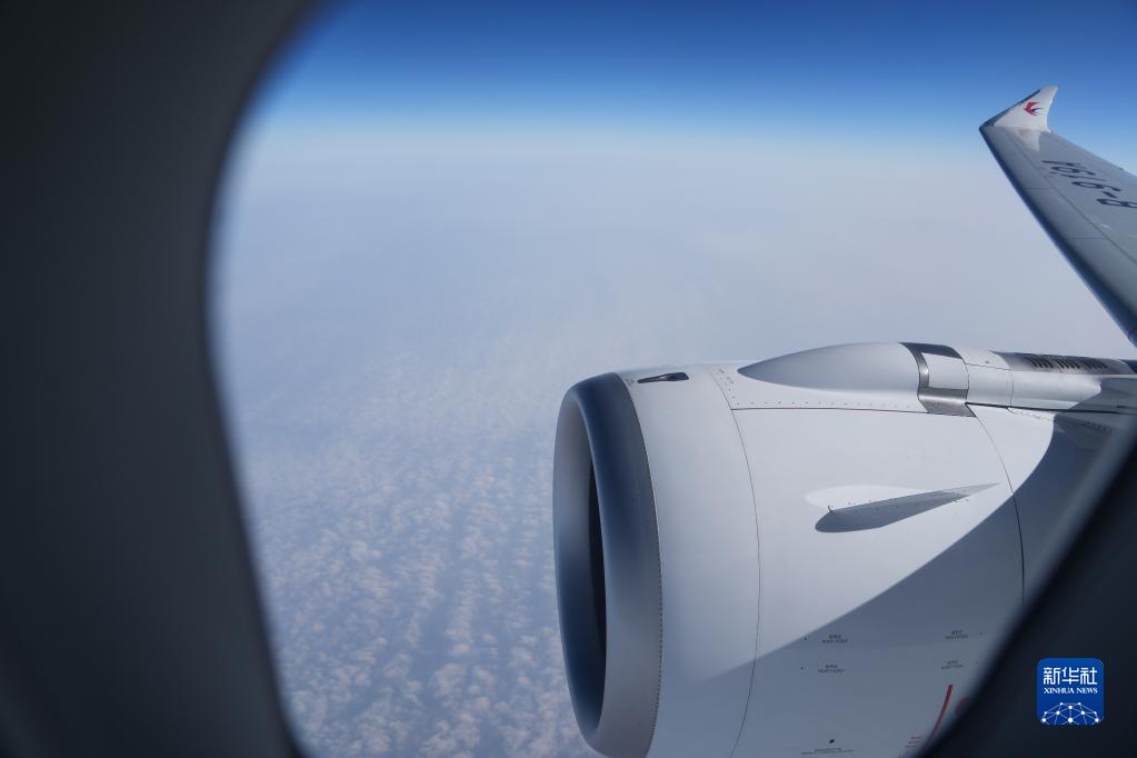 東航首架C919在空中飛行(1月9日攝)。