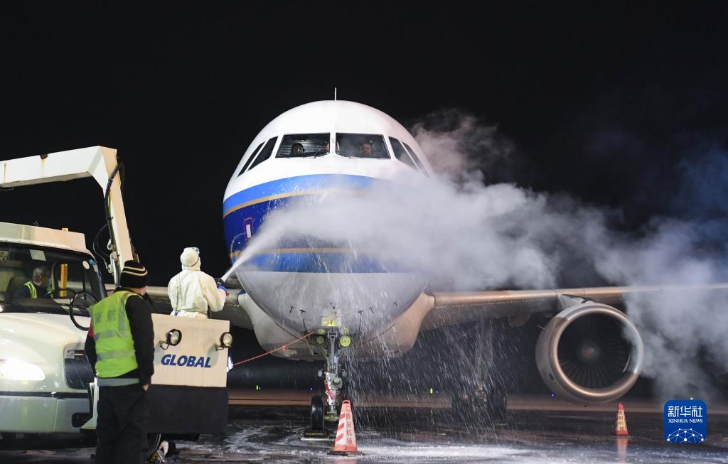 新華全媒+·新春走基層丨嚴寒下的航班守護者——走近深夜里的飛機“除冰師”