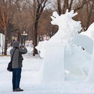 1月18日拍攝的第二十九屆全國雪雕比賽一等獎作品《期盼》。