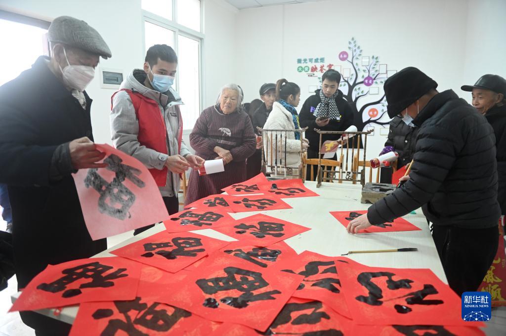 春節臨近,各地舉行寫(xiě)春聯(lián)送祝?;顒?dòng),書(shū)法志愿者為群眾書(shū)寫(xiě)并贈送新春對聯(lián)和福字,送上新春祝福。