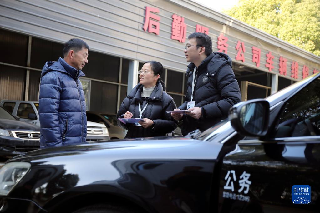 1月18日,紀檢監察干部對照派車(chē)任務(wù)清單檢查未派車(chē)輛定點(diǎn)停放情況。
