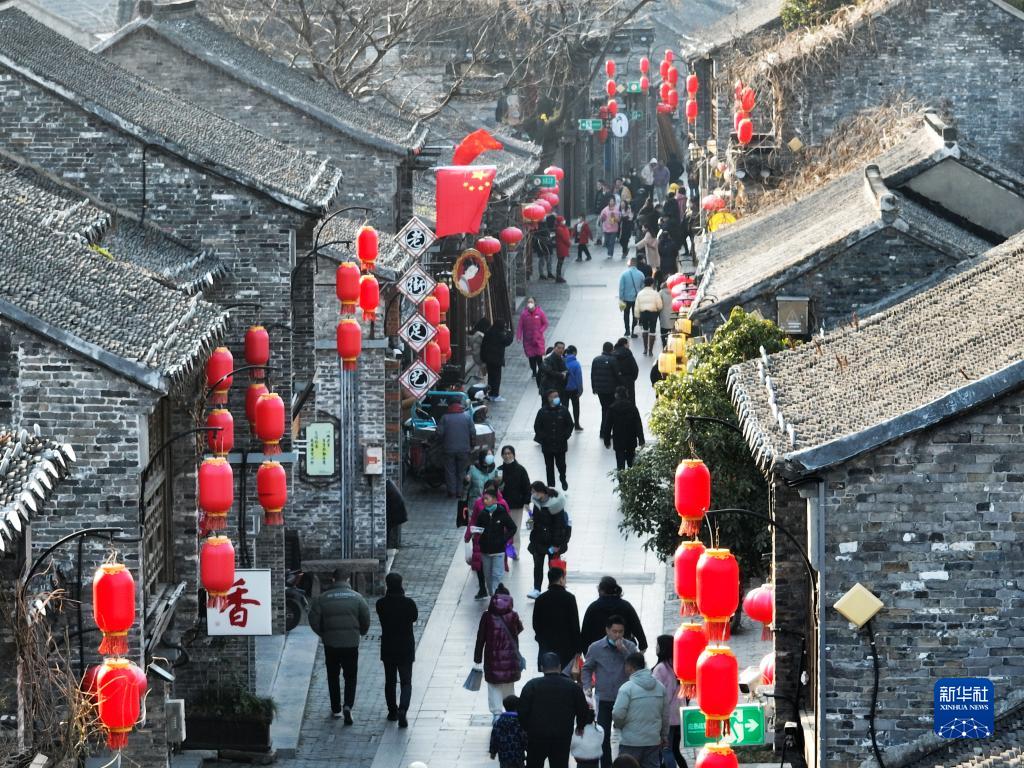 1月18日,游客在江蘇省揚州市東關(guān)街游覽(無(wú)人機照片)。