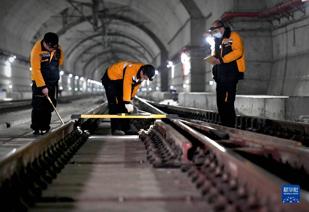 冬日凌晨,地下30米的隧道里,工作人員趴在冰涼的軌枕上,認真檢查每一米線(xiàn)路和每一個(gè)螺絲?!斑@幾天降溫,線(xiàn)路易出現伸縮變化,大家檢查時(shí)一定要仔細?!标愱?yáng)陽(yáng)手持軌道檢查尺一邊仔細測量鋼軌水平數據,一邊交代著(zhù)檢查重點(diǎn)?!半m然夜間工作很辛苦,但看到列車(chē)滿(mǎn)載著(zhù)旅客安全、正點(diǎn)到達目的地,所有的付出都值得?!标愱?yáng)陽(yáng)說(shuō)。