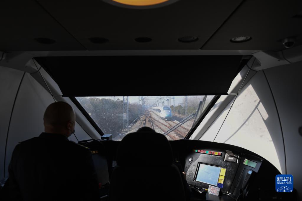D2246/D2247次列車(chē)的杭州機輛段動(dòng)車(chē)組司機在駕駛室操作(1月18日攝)。