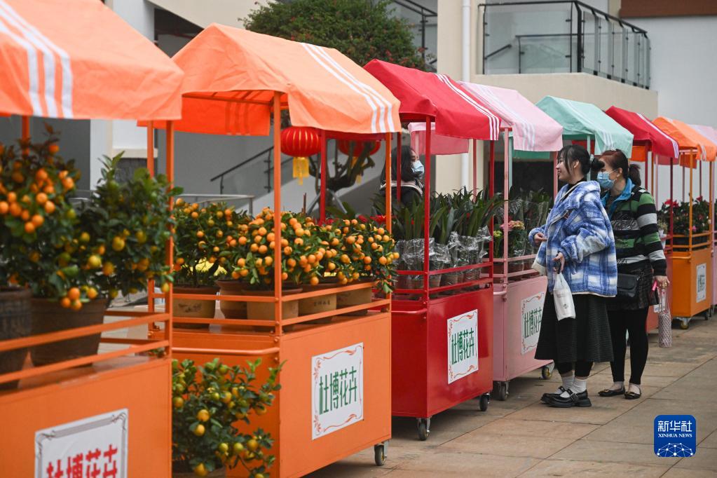 1月18日,顧客在海南熱帶花卉交易(拍賣(mài))市場(chǎng)選購花卉。