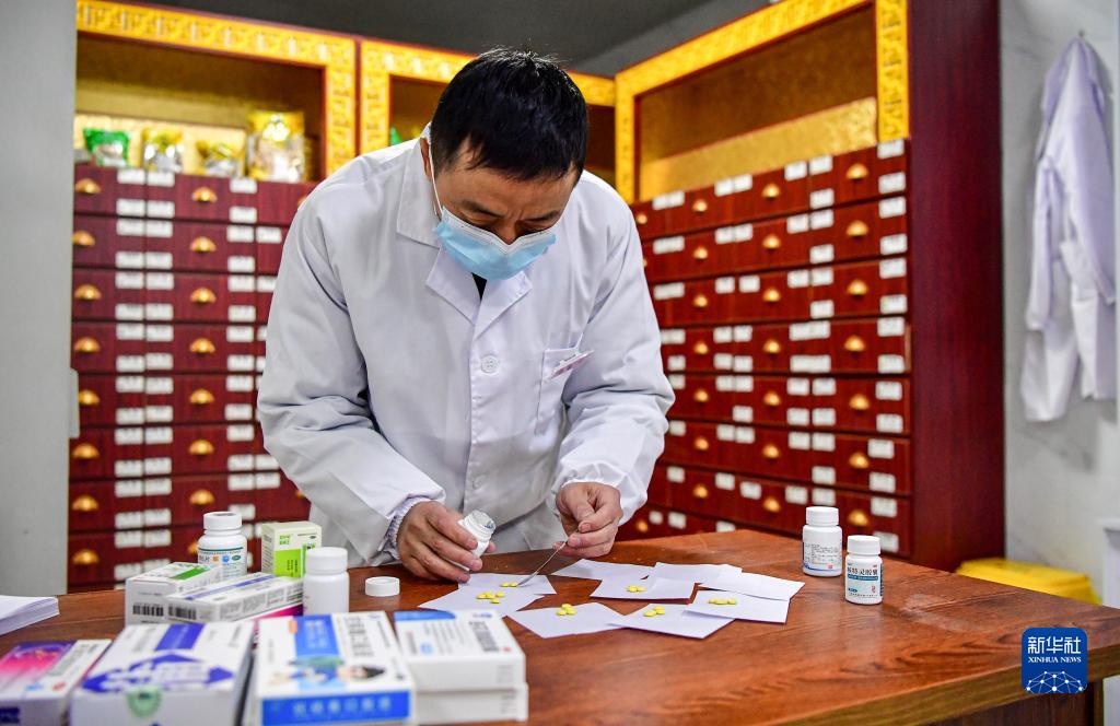 1月19日,北川縣曲山鎮任家坪村、石椅村聯(lián)合衛生室村醫趙太安在村衛生室分揀藥品。