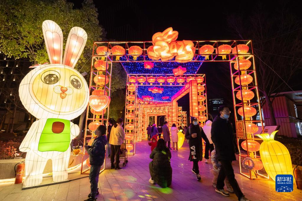 1月18日晚,2023癸卯兔年莘莊燈會(huì )在上海市閔行區莘莊鎮莘莊商務(wù)區正式啟幕。今年的莘莊燈會(huì )將從1月18日持續到2月6日,展出的大型燈組多數以兔子為設計原型,同時(shí)融入莘莊梅花、吉祥物“莘寶”等元素,眾多市民前來(lái)賞燈游玩,感受新年氛圍。