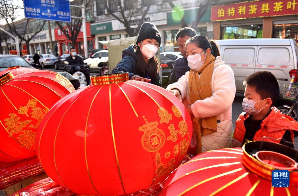 1月20日,市民在河北省邢臺市南和區和陽(yáng)鎮年貨集市購買(mǎi)紅燈籠。