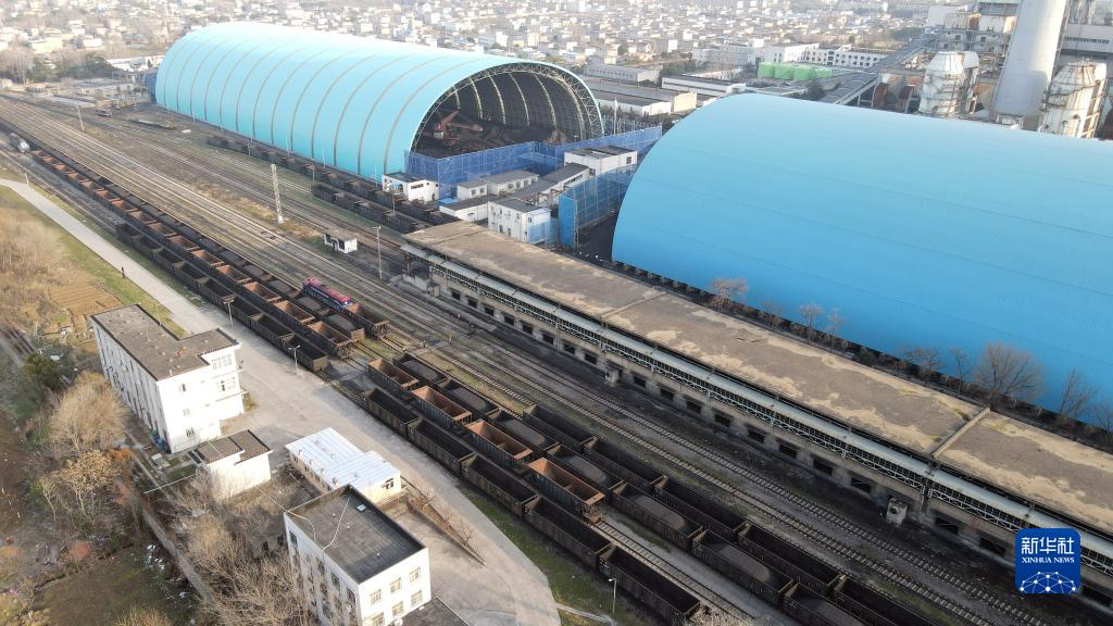 1月19日,在大唐安徽發(fā)電有限公司淮南洛河發(fā)電分公司,一列列電煤專(zhuān)列等待卸煤作業(yè)(無(wú)人機照片)。