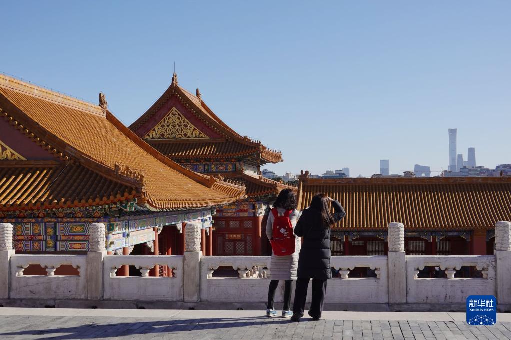 春節前夕,不少游人來(lái)到北京故宮博物院,在藍天暖陽(yáng)下感受冬日故宮的獨特韻味。