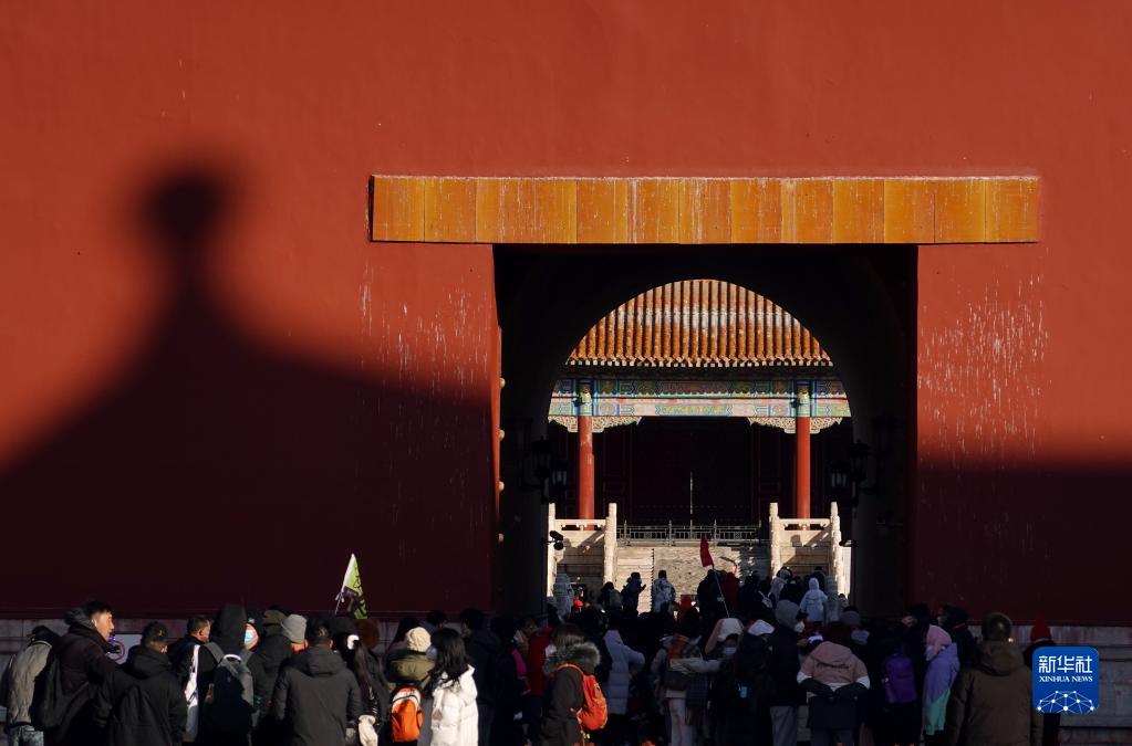 春節前夕,不少游人來(lái)到北京故宮博物院,在藍天暖陽(yáng)下感受冬日故宮的獨特韻味。