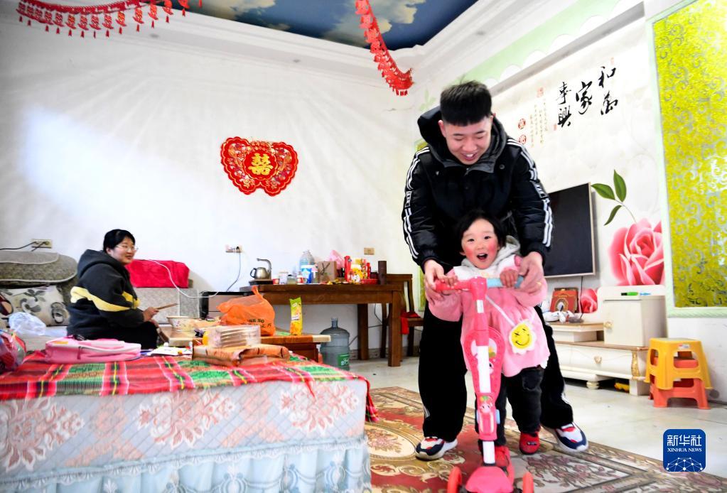 1月19日,靳亞克在陪女兒靳佳穎玩耍。