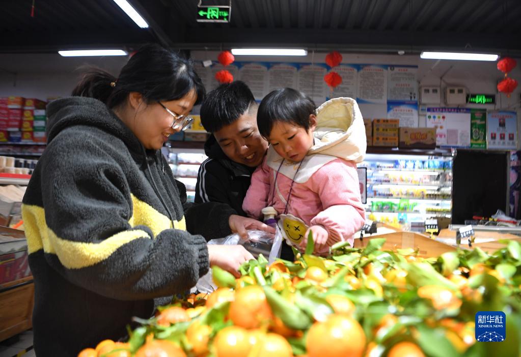 1月19日,靳亞克一家在鎮上一家超市選購水果。