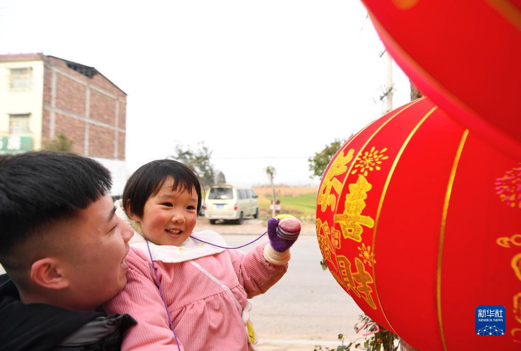 1月19日,靳亞克抱著(zhù)女兒靳佳穎買(mǎi)燈籠。