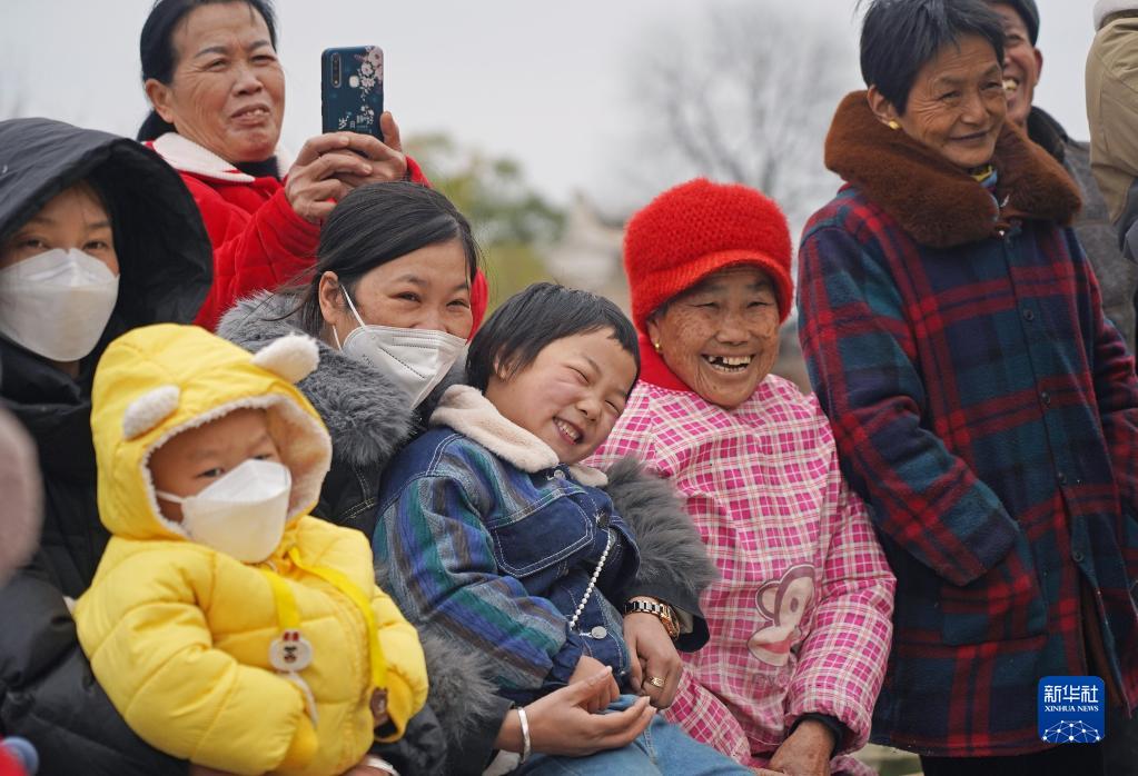 1月20日,江西省廣昌縣甘竹鎮龍溪村村民在觀(guān)賞孟戲。
