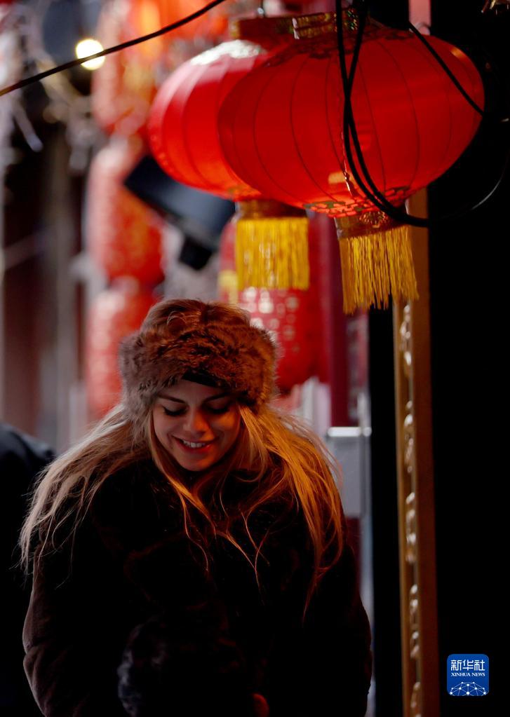1月20日,一名女子在英國倫敦中國城內游覽。