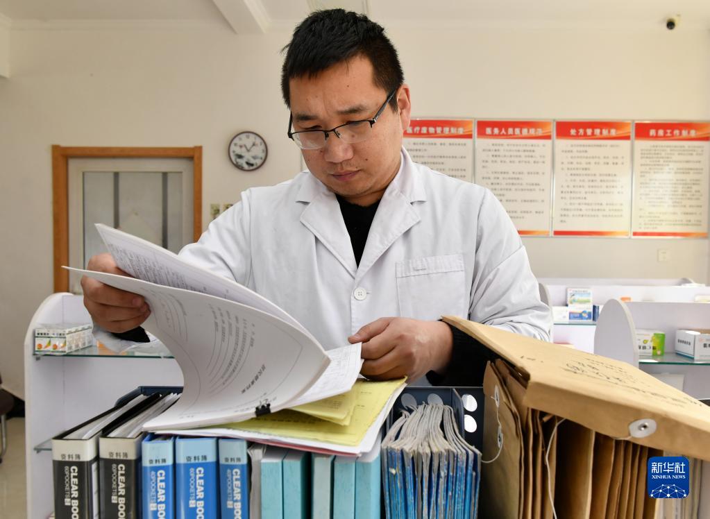 1月20日,南洋陽(yáng)在村衛生室內查閱資料。