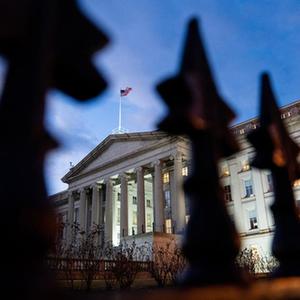 這是1月20日在美國首都華盛頓拍攝的財政部大樓。