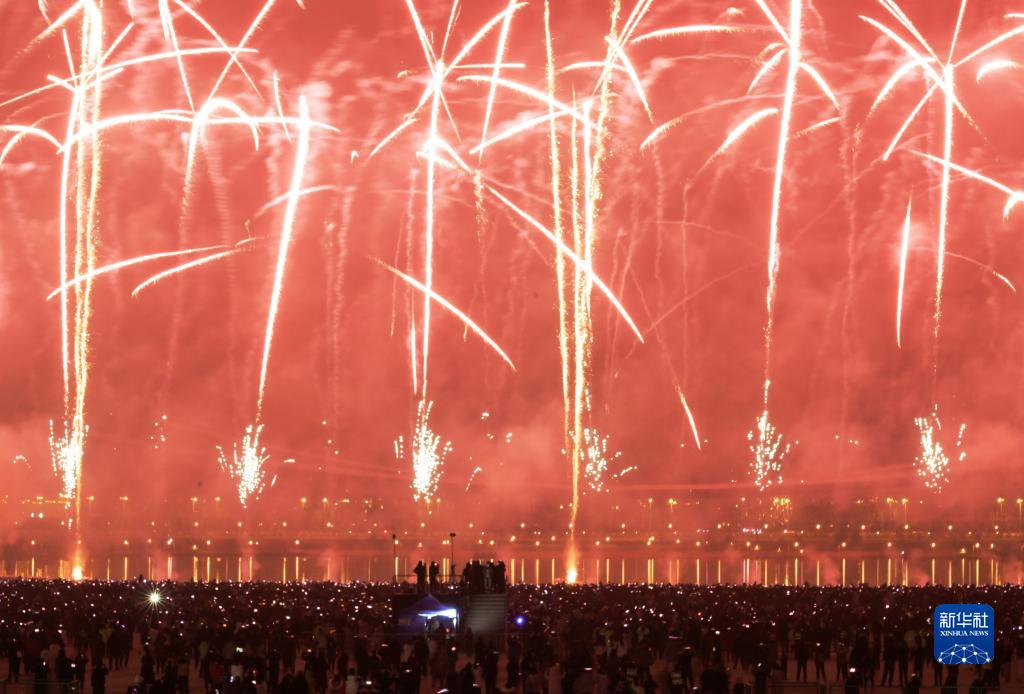 農歷除夕夜,陜西西安市民在觀(guān)看煙花表演中喜迎新年。