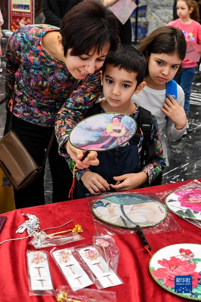 1月21日,來(lái)賓在俄羅斯莫斯科的迎新春活動(dòng)上欣賞扇子。