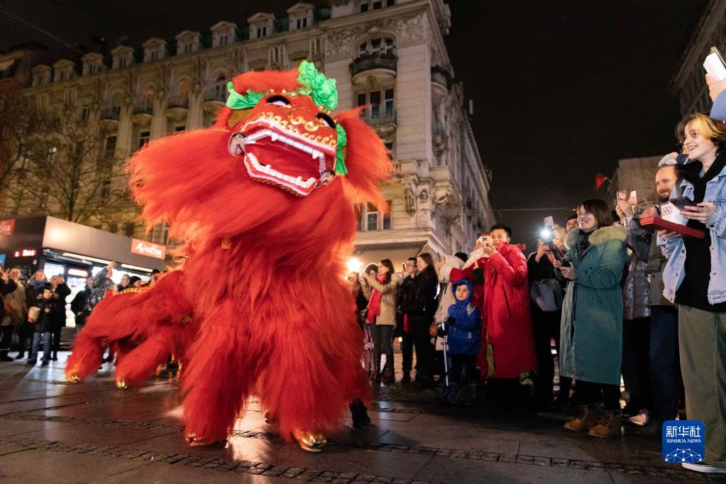 1月21日晚,在塞爾維亞首都貝爾格萊德舉行的“歡樂(lè )春節——絲綢之路上的友誼大篷車(chē)”活動(dòng)上,民眾觀(guān)看中國傳統舞獅表演。