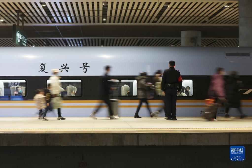 1月21日,在西安北站,鐵路民警堅守崗位,護送旅客平安出行。
