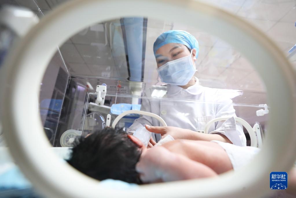 1月22日凌晨,在湖南省衡陽(yáng)市,南華大學(xué)附屬第一醫院新生兒科的醫務(wù)工作者在給新生兒喂奶。