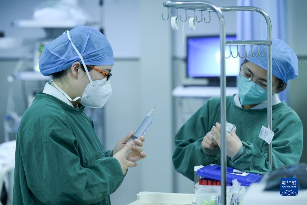1月21日除夕夜,醫護人員在安徽醫科大學(xué)第二附屬醫院急診搶救室配藥。