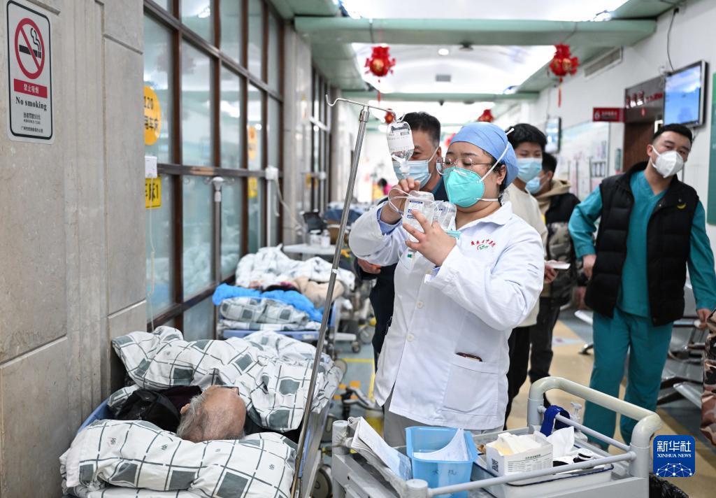 1月21日除夕夜,廣東省中醫院大德路總院急診科的醫護人員為患者輸液。