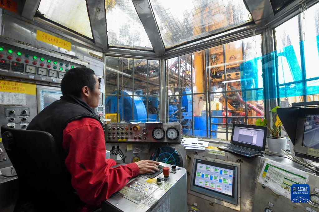 1月20日,在西江23-1平臺,司鉆人員在鉆臺控制室內操控鉆機。