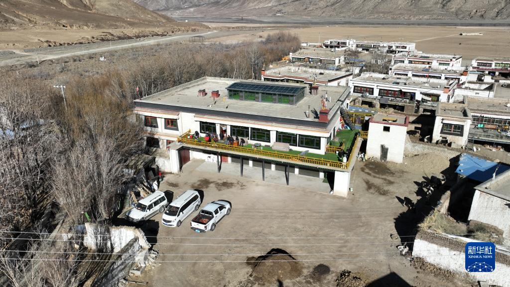 西藏日喀則市拉孜縣扎西宗鄉雜村次旦老人家的二層小樓(1月22日攝,無(wú)人機照片)。