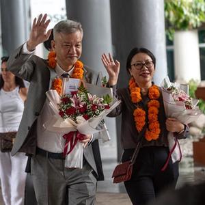 當天,旅游勝地巴厘島迎來(lái)2023年首架中國游客包機。乘客從中國深圳飛抵巴厘島后,在機場(chǎng)受到熱烈歡迎。