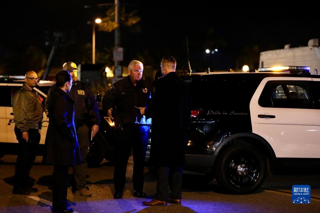 1月22日凌晨,警察在美國加利福尼亞州洛杉磯縣蒙特雷帕克市的槍擊事件現場(chǎng)工作。