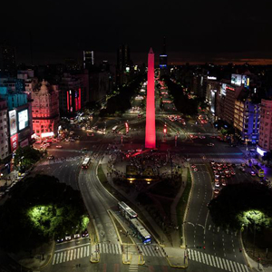 1月22日,阿根廷首都布宜諾斯艾利斯市中心的地標性建筑方尖碑點(diǎn)亮“中國紅”,慶祝中國春節。