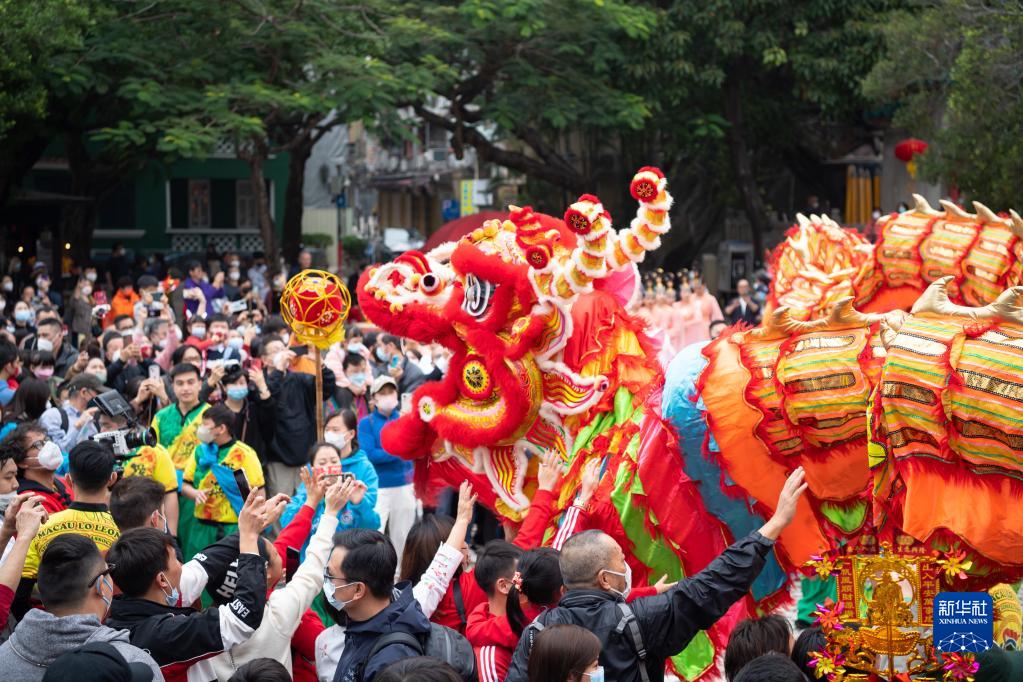 當日是大年初二,澳門(mén)旅游局在媽閣廟前安排了舞龍舞獅、變臉等賀歲活動(dòng),吸引大批市民及游客駐足觀(guān)賞。