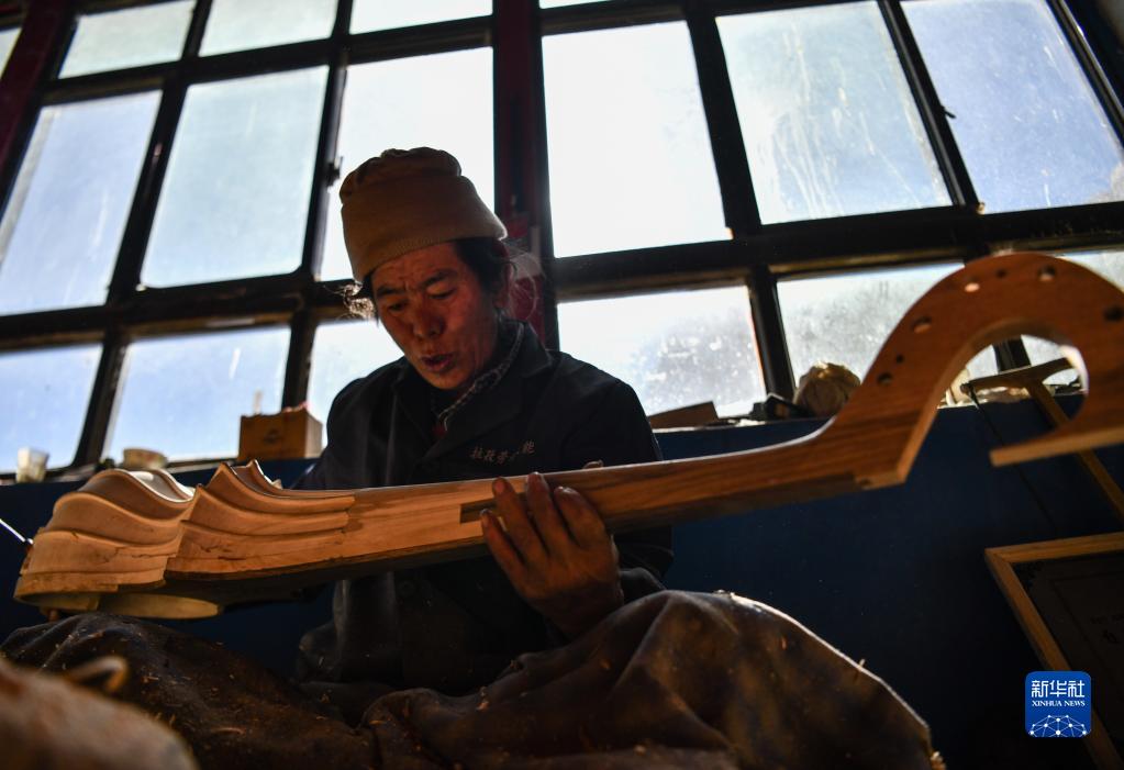 合作社的工匠在制作扎念琴(1月19日攝)。