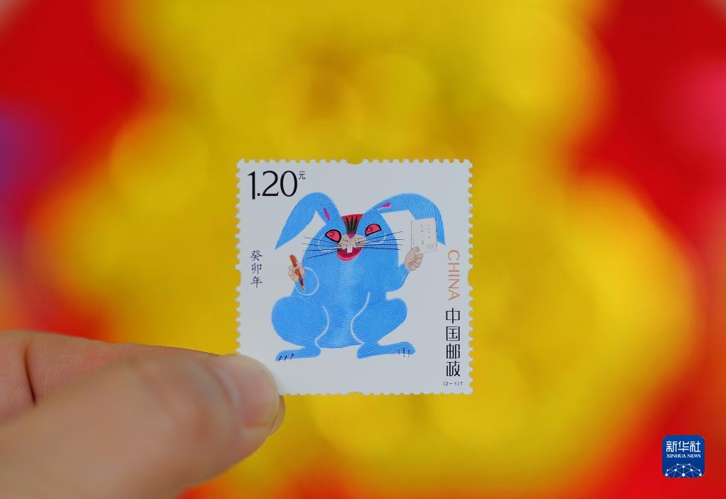 山東省滕州市集郵愛(ài)好者展示兔年生肖郵票(1月21日攝)。