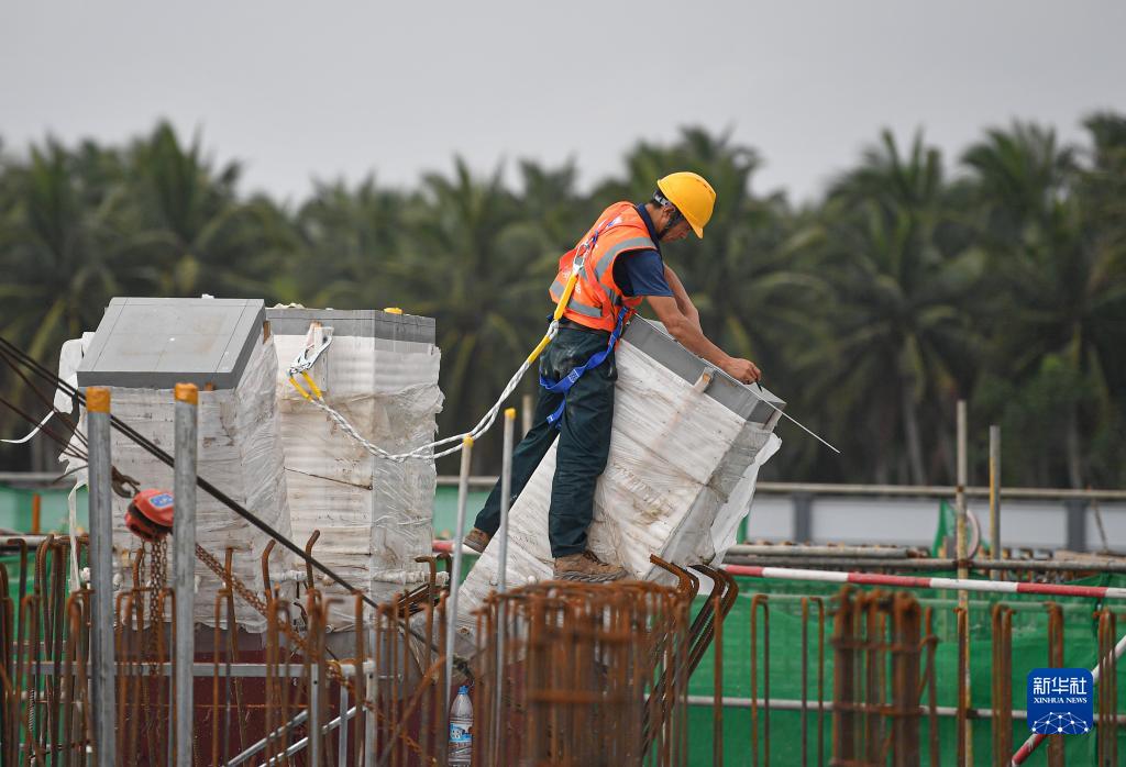 1月23日,工人在位于海南省文昌市的海南商業(yè)航天發(fā)射場(chǎng)1號工位施工。