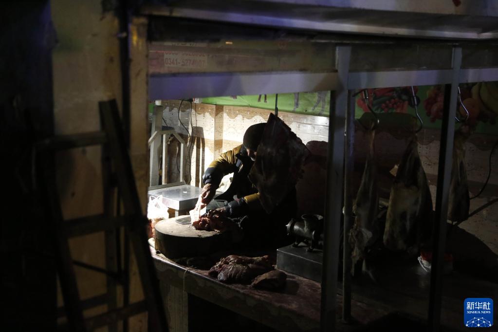 1月23日,在巴基斯坦伊斯蘭堡,一家肉鋪在大規模停電期間營(yíng)業(yè)。