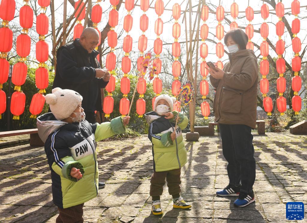1月24日,游客在西溪濕地一處年俗景觀(guān)前游玩。