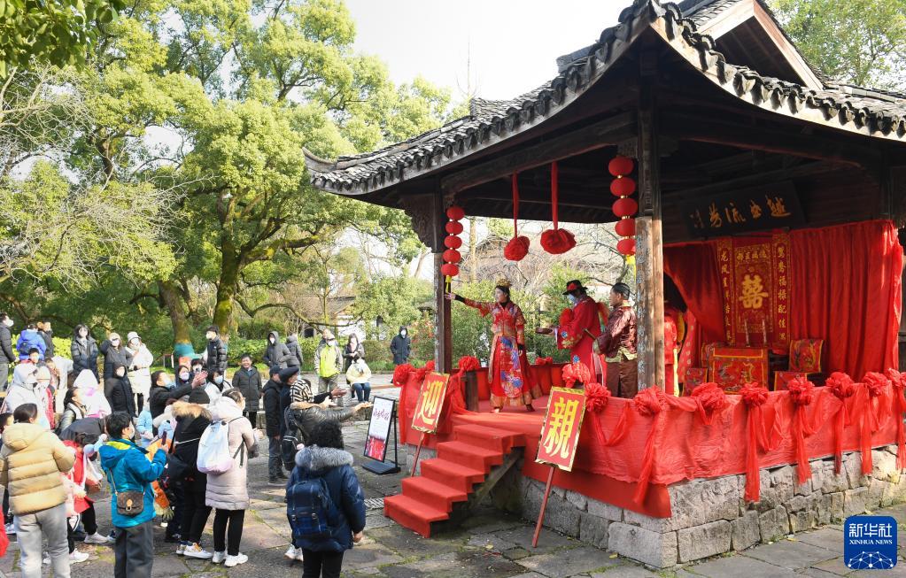 春節期間,浙江杭州西溪濕地推出水鄉婚俗表演、年俗集市等活動(dòng),烘托出濃濃年味。