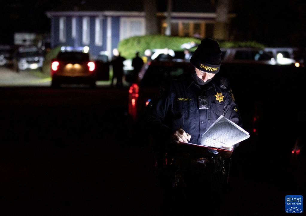 1月23日,執法人員在美國加利福尼亞州舊金山灣區半月灣市槍擊事件現場(chǎng)調查。